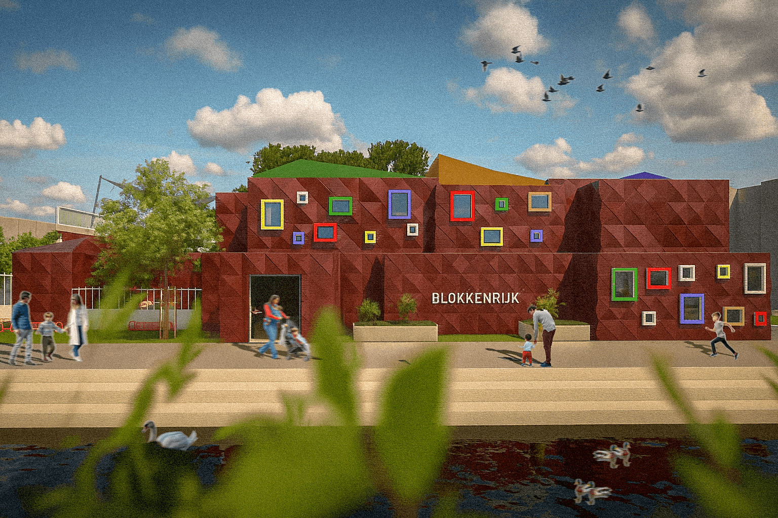 This daycare next to Amsterdam Sloterpark is composed of stacked blocks, creating playful volumes and dynamic spatial experiences for children. The modular design allows for flexible interior layouts, while outdoor spaces are integrated between the blocks to encourage interaction with nature. Bright colors, varied heights, and open connections make the building engaging, functional, and inviting for its young users.